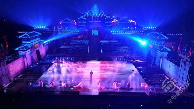 作为本次假期的重头戏,沉浸式三国实景剧《赤壁·借东风》每晚在东风街上演。隆隆战车、纷飞箭矢、冲天火光,搭配特效与投影技术,火烧赤壁的壮丽场面逼真呈现,让历史“活”了起来,现场观众仿若置身金戈铁马的古战场。