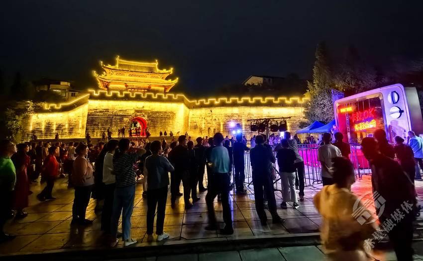 国庆夜游必打卡!蒲圻古城门露天音乐厅,全民打擂