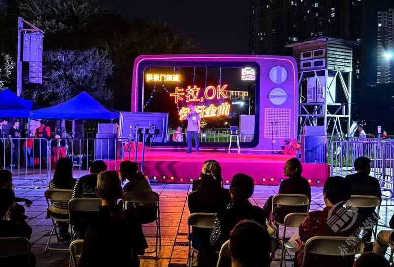 当晚7时许,东洲桥头下蒲圻古城拱极门广场灯火通明,露天舞台的射灯划破靛蓝夜空,一首首经典歌曲娓娓道来。参赛选手在擂台上放声高歌,用激昂旋律诉说对祖国安定繁荣的赞颂;观众席上掌声、欢呼声此起彼伏,大家跟着节奏轻轻哼唱,在熟悉的旋律中感受生活的美好与节日的喜悦。