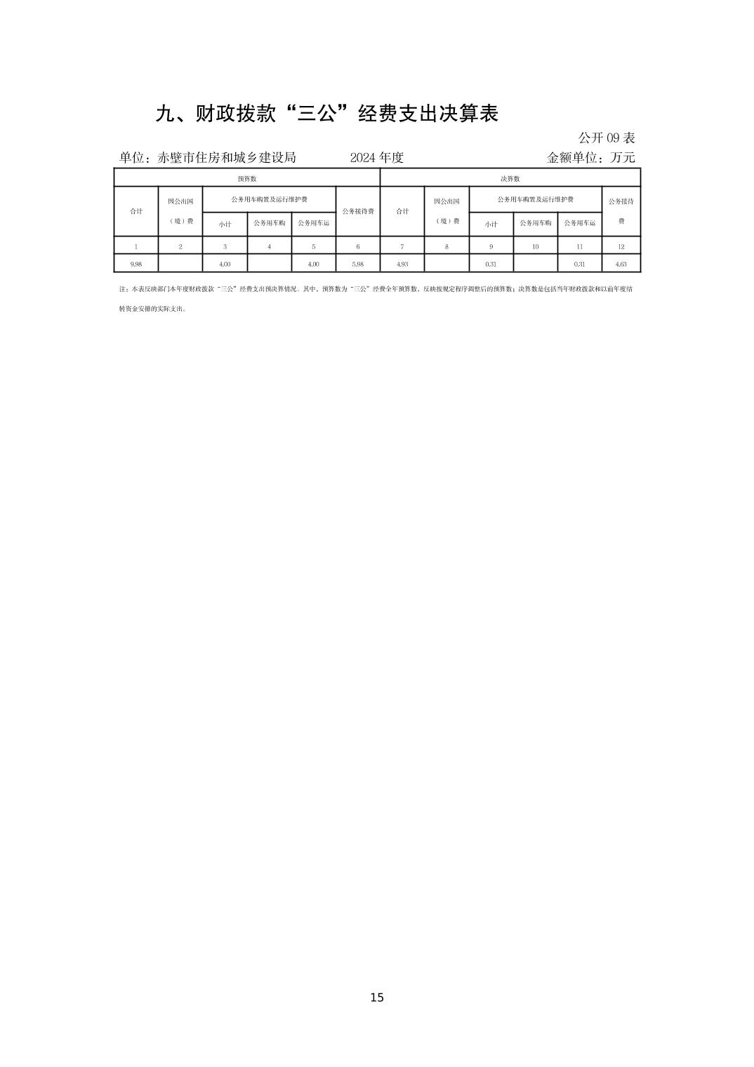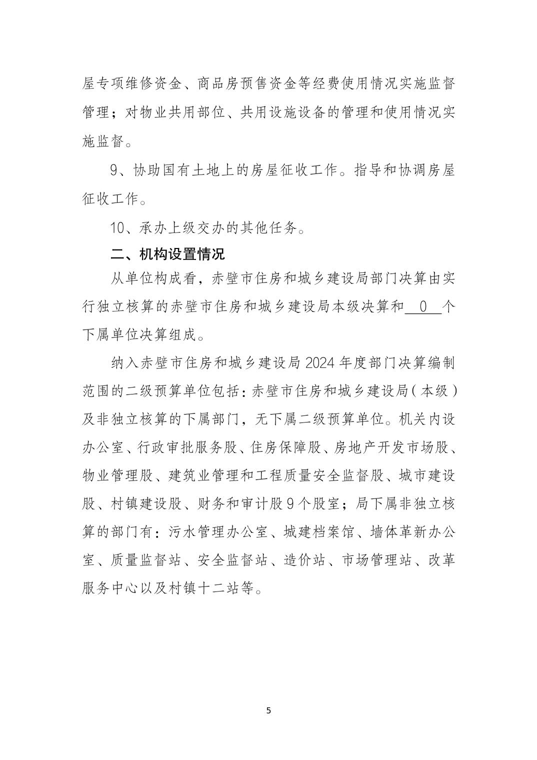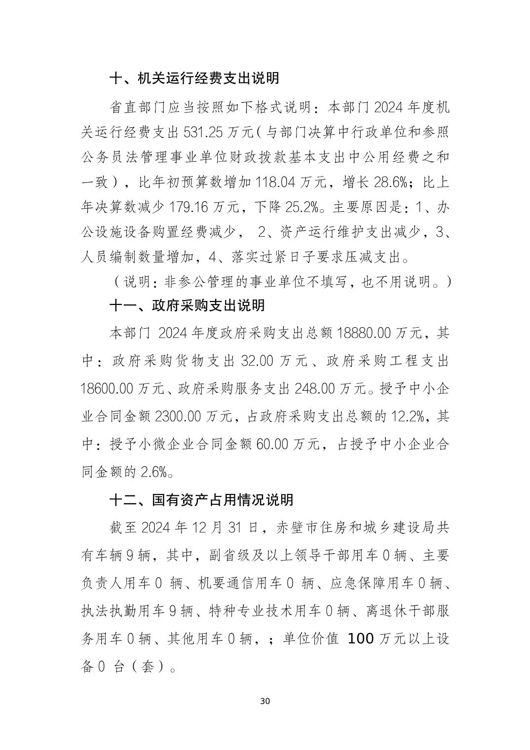 名       称: 赤壁市住房和城乡建设局2024年度部门决算 发布日期: 2025年09月19日