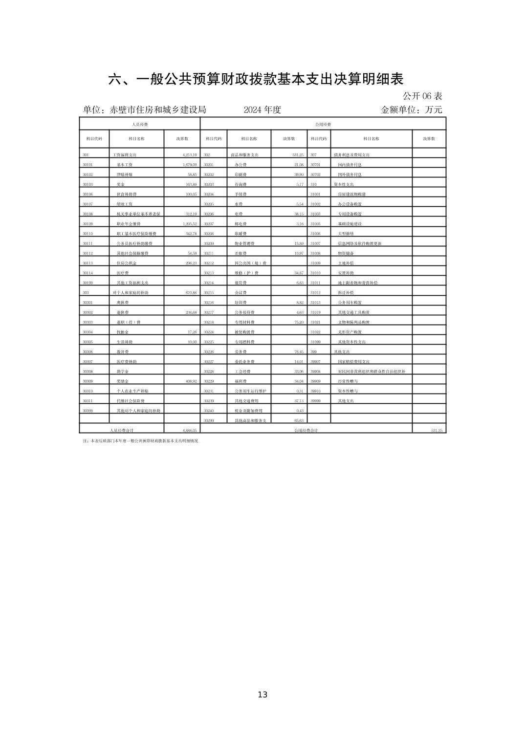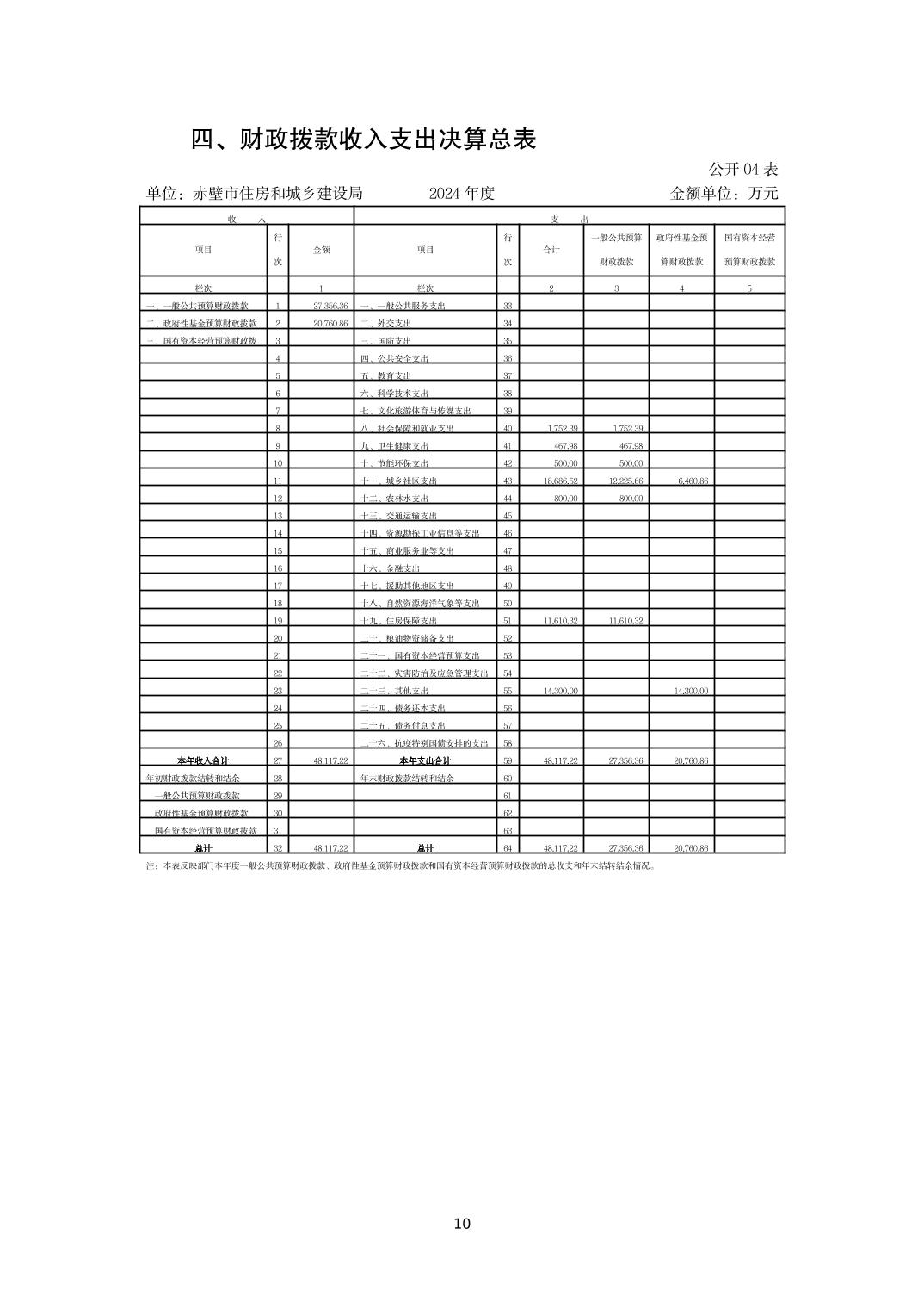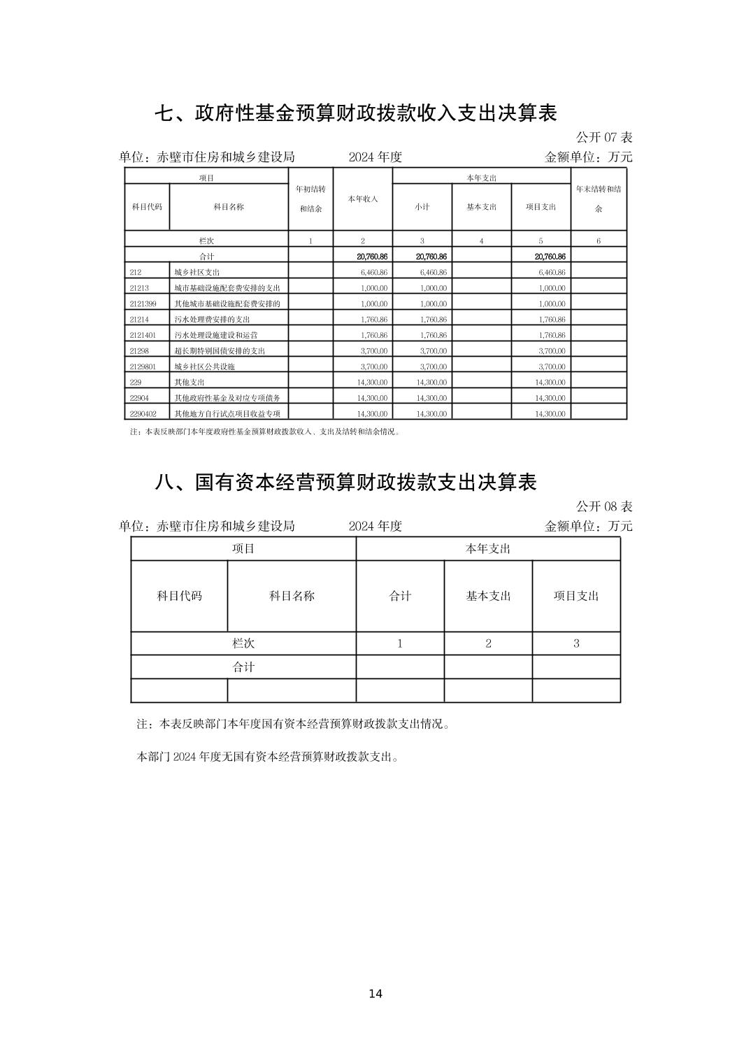 名       称: 赤壁市住房和城乡建设局2024年度部门决算 发布日期: 2025年09月19日