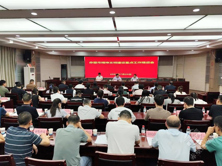 7月24日下午,赤壁市召开精神文明建设重点工作推进会,传达学习习近平总书记对精神文明建设工作作出的重要指示精神,通报全市移风易俗整体推进、城市文明建设和“爱我咸宁 共建家乡”主题活动等工作情况,安排部署近期精神文明建设重点工作。市委常委、宣传部部长吴云南出席并讲话。