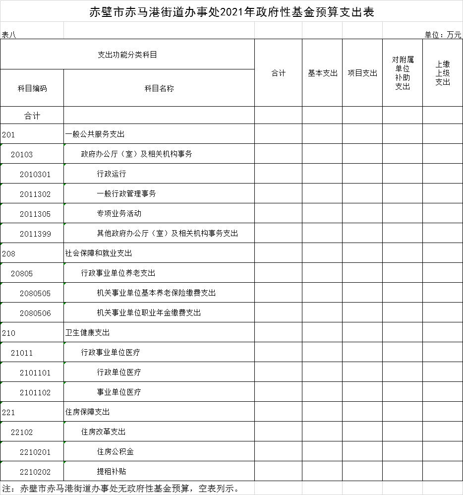 赤壁市赤马港街道办事处2021年无政府性基金预算支出。