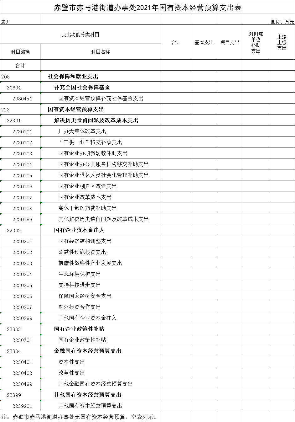 赤壁市赤马港街道办事处2021年无国有资本经营预算支出。